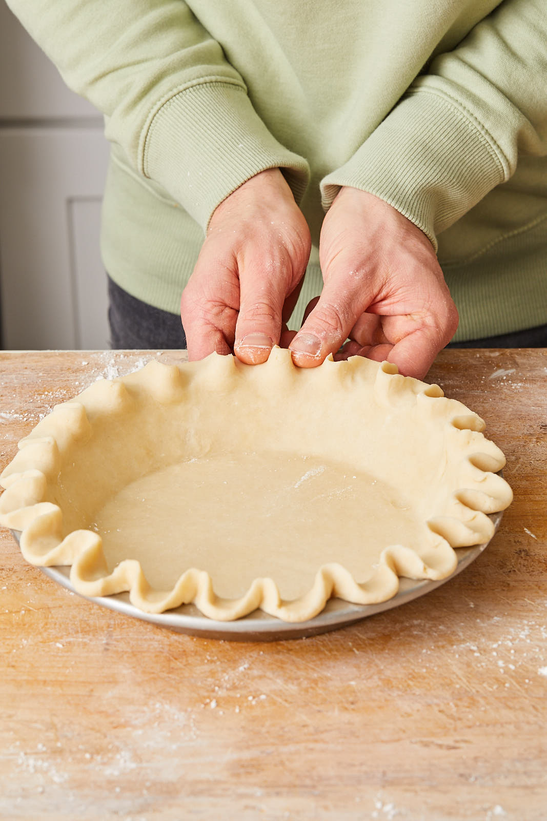 For a double-crust or lattice-crust pie, form the dough into two disks using ⅔ of the dough (about 15 ounces) for one and the remaining ⅓ (about 9 ounces) for the second. For 2 single-crust pies, divide the dough into two equal portions.